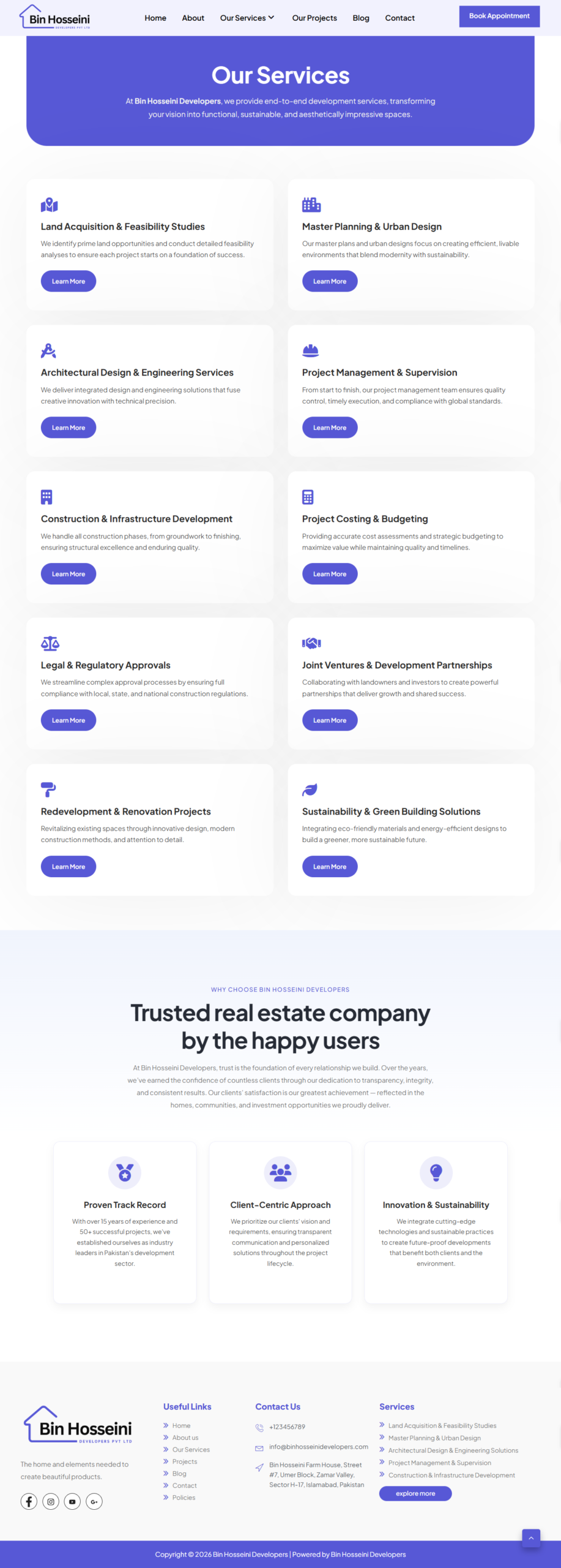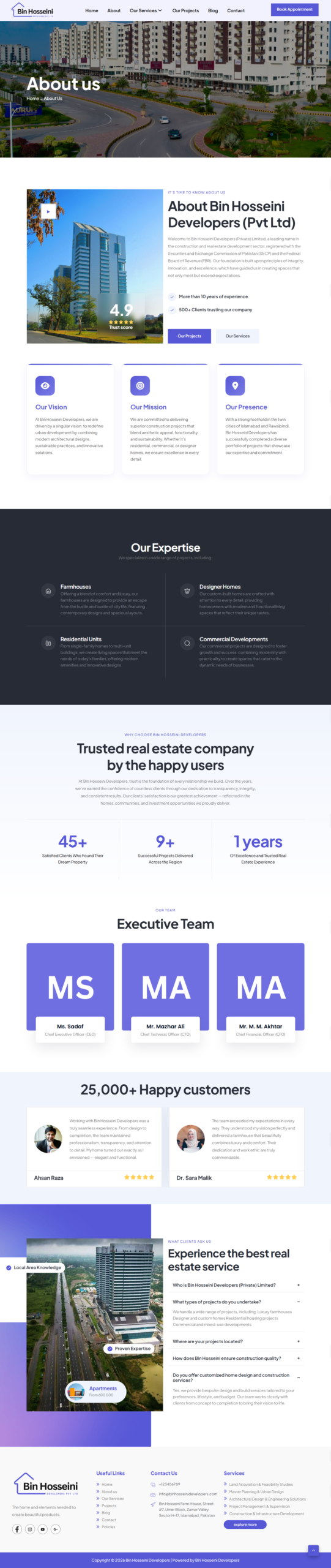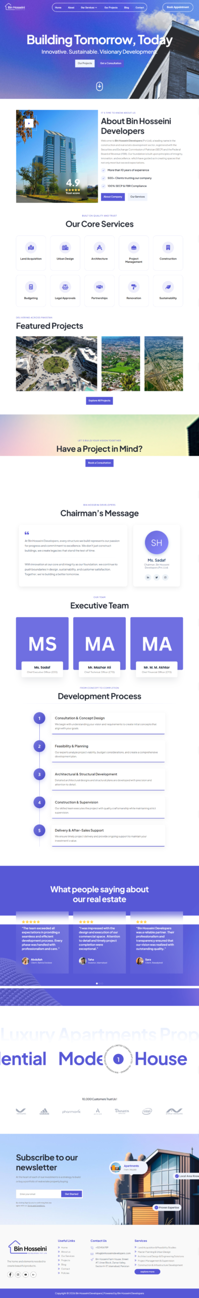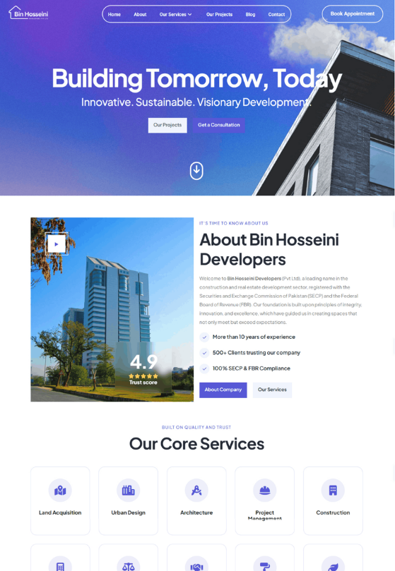 Bin Hosseini Developers delivers high-quality construction and real estate projects designed for modern living and long-term value. Each project reflects a strong commitment to quality, smart design, and timely delivery—ensuring comfort, functionality, and customer satisfaction at every stage.